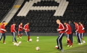 Piłkarze Wisły o godzinie 19:30 czasu miejscowego, a więc o 20:30 czasu polskiego, wyszli na Craven Cottage na przedmeczowy trening. Chociaż po przyjeździe do Anglii zawodników Białej Gwiazdy przywitała ładna pogoda, to gdy wychodzili na murawę stadionu Fulham, padał lekki deszcz. » -