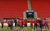 Zgodnie ze zwyczajami panującymi w europejskich pucharach, drużyna gości, a więc tym razem Wisła Kraków, swój trening przedmeczowy przeprowadziła w porze mecz na stadionie rywala. Piłkarze Białej Gwiazdy na zajęcia na obiekcie Twente wyszli punktualnie o godzinie 19:00. » -