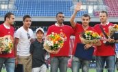 Przed ceremonią wręczenia trofeum za zdobycie mistrzostwa Polski piłkarzom Białej Gwiazdy, prezes klubu Bogdan Basałaj uhonorował zawodników, którzy nie grają już w Krakowie, ale mieli swój wkład w trzynasty triumf w historii. » -