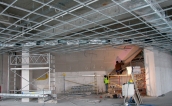 Na górnych piętrach trybuny zachodniej rozpoczął się montaż sufitów podwieszanych. Inaczej będą one wyglądały na najwyższej kondygnacji, inaczej na pozostałych piętrach. »