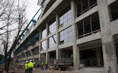 Na trybunie zachodniej rozpoczął się montaż szyb w elewacji budowy. Pierwsze szklane elementy pojawiły się w narożniku północno-zachodnim od strony ulicy Reymonta. » -