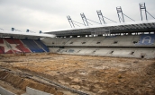 Na trybunie wschodniej widoczna jest już jedna z literek, w które układane są krzesełka. » -