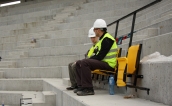 Na trybunie wschodniej trwają ostatnie przygotowania do montażu krzesełek na tej części stadionu. We wtorek wiercone były otwory, w które wkręcane będą śruby mocujące siedziska na sektorze C. »