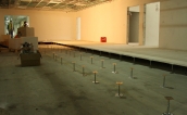Trwa układanie podniesionych podłóg na pierwszym piętrze trybuny wschodniej. Ułożone zostały one już we wszystkich pomieszczeniach, teraz prace przeniosły się na korytarz, gdzie też już są na zaawansowanym etapie. » -