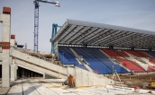 Na budowie trybuny zachodniej zaczęło się układanie belek skośnych. To na nich oparte będą kolejne rzędy trybun. N razie montowany jest ten fragmenty trybuny, który stworzy najniższy rząd na nowym sektorze. » -