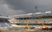 We wtorek pod dachem sektora C zamontowana została konstrukcja, na której umieszczony będzie telebim. Obecnie trwa jej mocowanie do dach za pomocą odciągów. » -