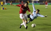 Andraż Kirm miał w Bełchatowie niezłą okazję do tego, aby zdobyć bramkę, jednak Łukasz Sapela świetnie wybronił jego strzał z rzutu wolnego. »