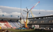 W środę nad nową trybunę C został wytransportowany pierwszy element dachu. Można więc uznać, że od 25 listopada rozpoczął się montaż dachu nad nową trybuną. » -