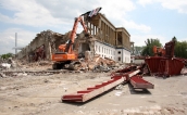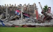 Jeszcze tylko niewiele pracy i sektor B całkowicie zamieni się w gruz. W piątek koło godziny 16 została po nim jedynie część najbliżej loży VIP. » -