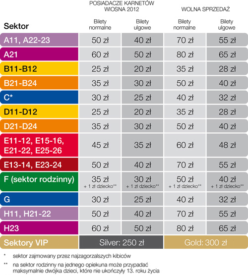 Nowością w rundzie wiosennej będzie większe zróżnicowanie cen na poszczególnych sektorach, dzięki czemu każdy kibic znajdzie coś dla siebie. Oprócz tego posiadacze karnetów na rundę wiosenną, studenci, młodzież ucząca się oraz panie będą mogli zakupić wejściówki po niższych cenach!