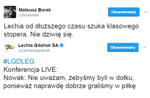 Zawiedzeni byli też fani Lechii Gdańsk, którzy licznie stawili się dopingować drużynę w hitowym starciu z Legią Warszawa. Goście długo przegrywali, ale ostatecznie - za sprawą rezerwowego - Michała Kucharczyka odwrócili losy tego meczu i dzięki temu mocno skomplikowali sytuację podopiecznych trenera Nowaka w ligowej tabeli.