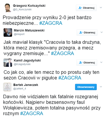 Data publikacji: 02-05-2017 18:00Żarty się skończyły! W miniony piątek rozpoczęła się prawdziwa walka! Jedni zaczęli bój o mistrzostwo i prawo gry w europejskich pucharach, inni chcą za wszelką cenę pozostać w ligowej elicie. A jeszcze inni najciekawsze wydarzenia kolejki komentują na Twitterze!