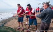 Nie na boisku, nie w siłowni, a na plaży miały miejsce w piątkowe przedpołudnie poranne zajęcia Białej Gwiazdy. » -