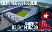 Piłkarskie emocje wracają na Reymonta 22! Dziesięć meczów ligowych, w tym hitowe pojedynki z Lechem Poznań oraz Legią Warszawa wchodzi w skład karnetu Jesień 2014, który kupić można już od 90 złotych! Sprzedaż karnetów rozpoczyna się 21 lipca w Strefie Kibica. » -