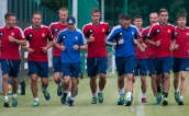 Dokładnie o godz. 10.30 piłkarze Wisły pojawili się na boisku treningowym kompleksu treningowego w Myślenicach. »
