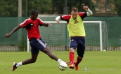 Przy idealnej pogodzie do gry w piłkę, chwilę po godzinie 10:30, pierwsza drużyna Wisły rozpoczęła swój trening. Po rozgrzewce i ćwiczeniach rozciągających, piłkarze Białej Gwiazdy szkolili przyjęcie piłki i krótkie podania. Podzieleni na trzy grupy ćwiczyli następnie jej rozegranie i opanowanie na małej przestrzeni, grając w tzw. „dziadka”. » -