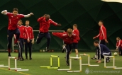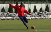 Podobnie jak wczoraj, tak i w czwartek podopieczni trenera Kulawika mieli trening na boisku Nadwiślana, gdzie jest sztuczna nawierzchnia. Przedpołudniowe zajęcia upłynęły pod znakiem rozgrzewki i strzałów, całkiem dalekich strzałów. » -