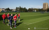 Trener Kulawik realizuje zapowiedziany plan zajęć i na popołudniowe zajęcia na boisku bocznym zawodnicy zabrali ze sobą piłki. Chociaż drużyna pracowała nad przygotowaniem fizycznym, to cały czas miała futbolówki przy nogach. » -