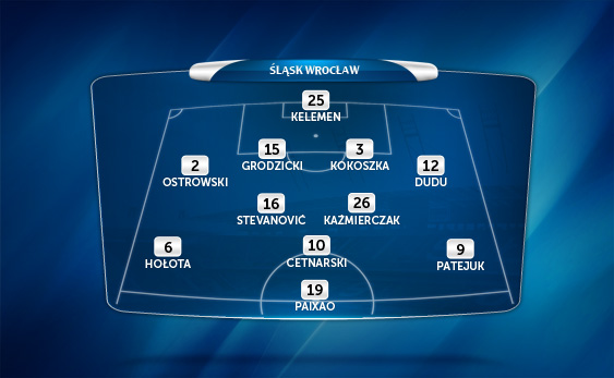 Pomoc: Śląsk jest kolejnym zespołem grającym pięcioma pomocnikami w systemie 1-4-2-3-1. Do momentu gry w zespole Waldemara Soboty taktyka tej formacji opierała się głównie na grze kombinacyjnej i częstym wykorzystywaniu boków, gdzie oprócz Waldemara szalał na początku sezonu Sebino Plaku. W spotkaniu przeciwko Jagiellonii, jak i w poprzednim z Koroną, trener Stanislav Levy zdecydował się na wariant z Tomaszem Hołotą na prawej stronie pomocy. Często zdarzało się jednak, że dołączał do Dalibora Stevanovica oraz Przemysława Kaźmierczaka i zagęszczał środek boiska. Na lewej stronie wystąpi zatem Sebino Plaku albo Sebastian Patejuk. W meczu przeciwko Jagiellonii do gry powrócił Sebastian Mila, ale czy pojawi się na murawie już od pierwszej minuty przeciwko Wiśle? Być może trener skorzysta ponownie z usług Mateusza Cetnarskiego jako ofensywnego pomocnika.
