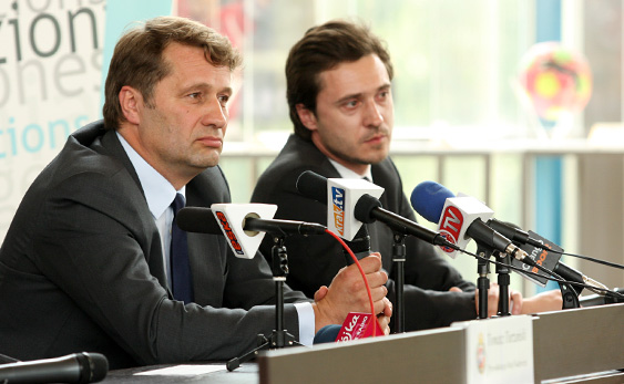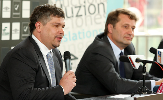 Data publikacji: 07-06-2010 15:20Bogdan Basałaj na specjalnej konferencji prasowej spotkał się z dziennikarzami, którym przedstawił strategię zarządzania klubem. „Nie ukrywam, że bycie prezesem klubu takiego jak Wisła Kraków to ogromny zaszczyt, ale i wyzwanie” – mówił przedstawicielom mediów prezes.