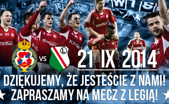 Staną naprzeciw siebie drużyna niepokonana oraz lider T-Mobile Ekstraklasy – Wisła Kraków i obecny mistrz Polski – Legia Warszawa! Na tym meczu nie może Cię zabraknąć. Razem tworzymy historię – pamiętajcie o tym!