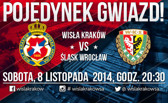 Data publikacji: 30-10-2014 10:30W czwartek 30 października rozpocznie się sprzedaż biletów na mecz przyjaźni Wisły Kraków ze Śląskiem Wrocław, który zostanie rozegrany 8 listopada o godzinie 20.30. Wygrajmy razem to spotkanie i znów zapełnijmy stadion przy R22!