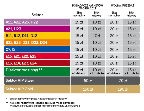 Mecz ten nie jest objęty karnetem także dla kibiców, którzy posiadają karnet VIP Silver oraz Gold na rundę wiosenną 2013.