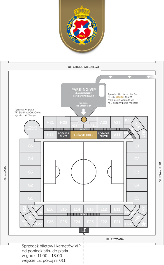 Dojazd do Strefy VIP, podobnie jak w ubiegłym sezonie, od ul. Reymonta (pomiędzy starą a nową halą Wisły).