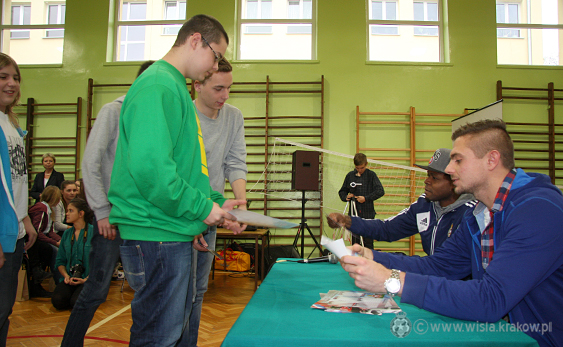 Data publikacji: 05-11-2013 15:43Po dzisiejszym treningu Michał Miśkiewicz oraz Emmanuel Sarki odwiedzili Gimnazjum nr 17.