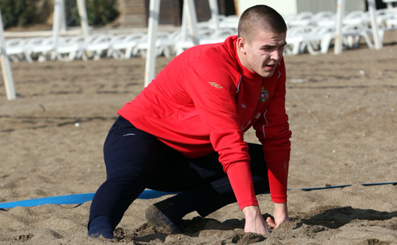 Na plaży Kurto i Jarosiński skakali przez płotki, wyskakiwali ponad siatkę na boisku do siatkówki, wyścigowali się i mieli urządzony mini mecz rugby. „Przyznam szczerze, że w tej chwili czuję się lekko zajechany. Wiem jednak, że o takie treningi w tej części okresu przygotowawczego chodzi i to zaowocuje w dalszej części sezonu” – powiedział po tak wyczerpujących zajęciach młodszy z dwójki golkiperów, Filip Kurto. To już kolejny taki dzień, gdy bramkarze trenują mocniej niż reszta drużyny. Zamiast iść na siłownię, trener Łaciak zabiera ich na plażę, gdzie na piasku w każdy wyskok muszą włożyć więcej siły niż w podobne ćwiczenia wykonywana na trawie.