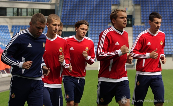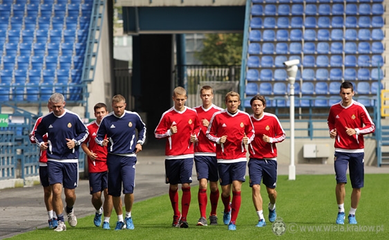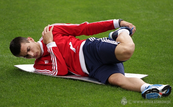 Obrońca Białej Gwiazdy wziął udział w poniedziałkowym treningu razem z kilkoma innymi zawodnikami. Grupka piłkarzy razem z trenerami Probierzem, Primelem i Zalewskim najpierw biegała wokół boiska głównego, a później miała ćwiczenia rozciągające.