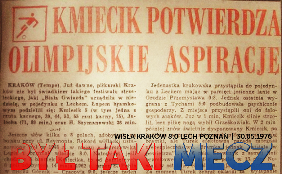 Data publikacji: 20-10-2016 10:37Przed Wisłą w piątek ligowe starcie z Bruk-Betem Termalicą, lecz my wybiegniemy już nieco dalej w przyszłość. Wszakże wszystkie mecze z niecieczanami odbyły się w niedalekiej przeszłości i kibice dobrze je pamiętają. Może warto wspomnieć tylko sparing z 2012 roku, kiedy to trzy bramki zdobył… Daniel Sikorski. Tak, ten sam Daniel Sikorski, który później w 19 ligowych potyczkach strzelił aż jednego gola! Po piątkowym pojedynku z Bruk-Betem Wiślaków czeka pierwszy mecz 1/4 Pucharu Polski. Po raz drugi w ciągu dziesięciu dni podopieczni Dariusza Wdowczyka zawitają do Poznania na starcie z Lechem. By pokrzepić piłkarzy Białej Gwiazdy, w cyklu „Był taki mecz” wspomnimy dziś o najwyższym zwycięstwie Wisły z Kolejorzem. Wygranej, którą doskonale pamięta II trener krakowian, Kazimierz Kmiecik, autor aż pięciu goli w tamtym spotkaniu, które zakończyło się wynikiem… 8:0.