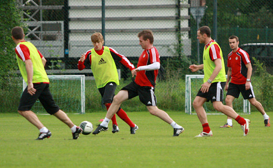 Piłkarze ofensywny natomiast pod okiem trenerów Moskala i Bahra szlifowali schematy gry ofensywnej. Z przodu ustawieni byli trzej napastnicy – Paweł Brożek, Maciej Żurawski i Rafał Boguski, do których piłki dogrywali pozostali piłkarze z prawego bądź lewego skrzydła.