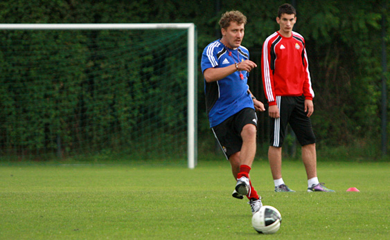 Z trenerem Kulawikiem pracowali obrońcy oraz dwaj defensywni pomocnicy – Radosław sobolewski i Cezary Wilk. Ćwiczyli oni przede wszystkim przesuwanie całej formacji w trakcie ataku przeciwnika. Trener Kulawik co chwila przerywał grę i instruował zawodników, jakie błędy popełniają i na co mają zwrócić szczególną uwagę w trakcie bronienia bramki.