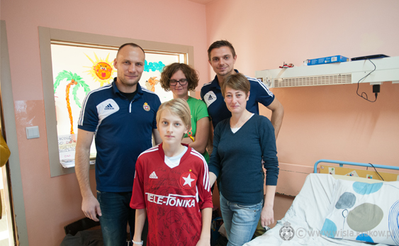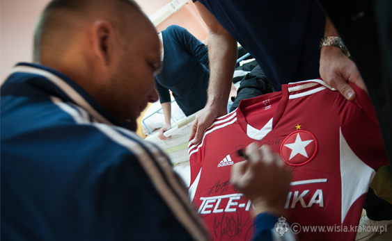 Pierwsze pytanie, jakie padło z ust Jasia pod adresem odwiedzających, dotyczyło wyniku meczu, tego… jak im poszło w spotkaniu z Legią, na które zmierzał! To była wzruszająca chwila, zawodnicy wręczyli choremu chłopcu oryginalną koszulkę z podpisami wszystkich piłkarzy krakowskiego zespołu, oraz z dedykacją: Dla Jasia Gwiazdy, od Białej Gwiazdy! Przekazali też życzenia powrotu do zdrowia i na trybuny przy Reymonta.