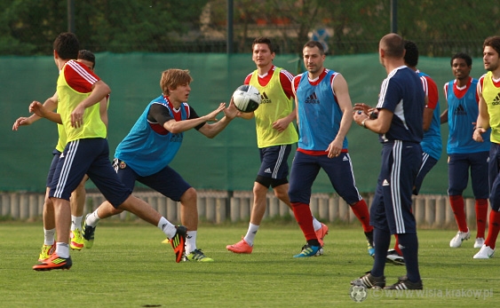 Data publikacji: 02-05-2012 18:15Piłkarze Wisły Kraków przygotowują się do przedostatniego meczu w sezonie. W związku z tym trener Michał Probierz popołudniowe zajęcia rozpoczął od luźniejszego akcentu.