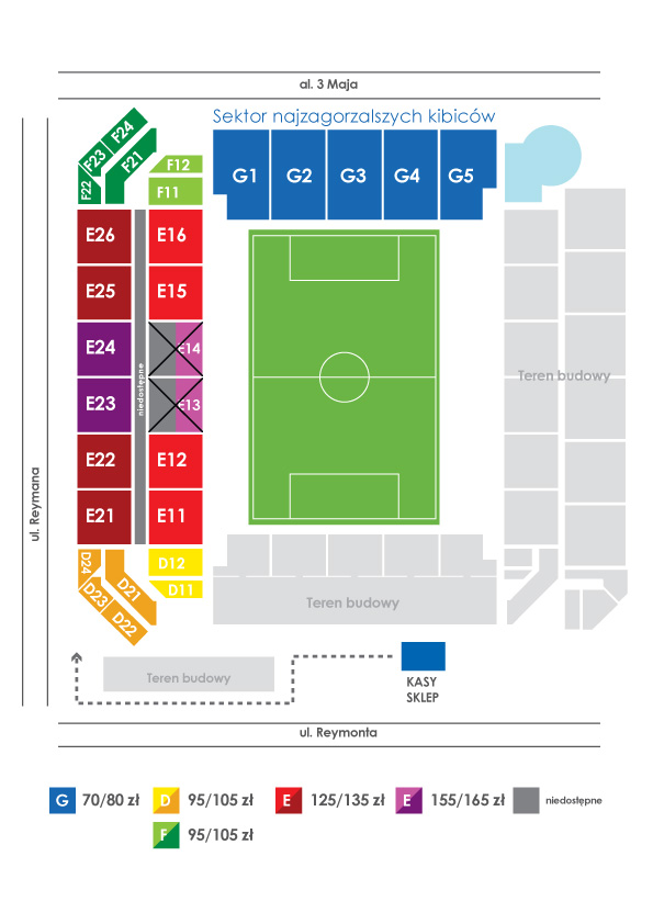 | Sektor | Dla posiadaczy kart kibica | Dla osób, które nie mają Kart Kibica |