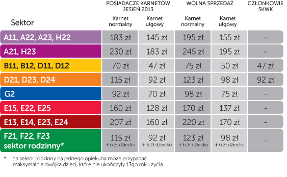 - do zakupu karnetu niezbędne jest posiadanie aktualnej Karty Kibica Dowiedz się więcej o Kartach Kibica