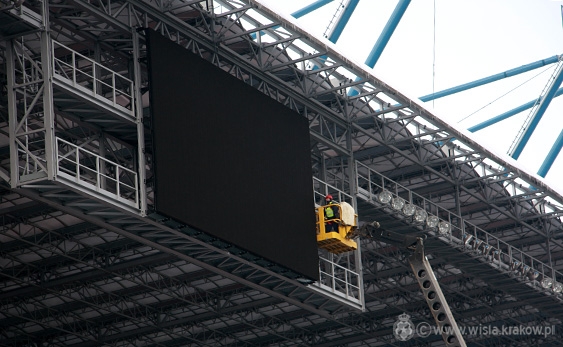 Data publikacji: 25-02-2011 13:44Po zaledwie dwóch dniach ukończono montowanie telebimu na trybunie zachodniej.