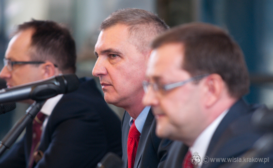 Data publikacji: 07-01-2015 13:55Nowy Prezes Zarządu Wisły Kraków, Robert Gaszyński, po raz pierwszy wystąpił w środę przed krakowskimi dziennikarzami. W konferencji prasowej uczestniczyli także Wiceprezes Klubu Mirosław Jankowski oraz Przewodniczący Rady Nadzorczej – dr hab. Mirosław Pawełczyk.