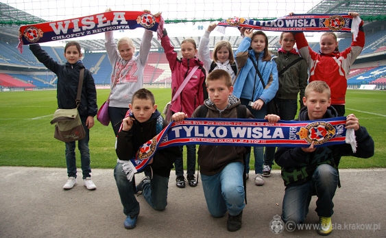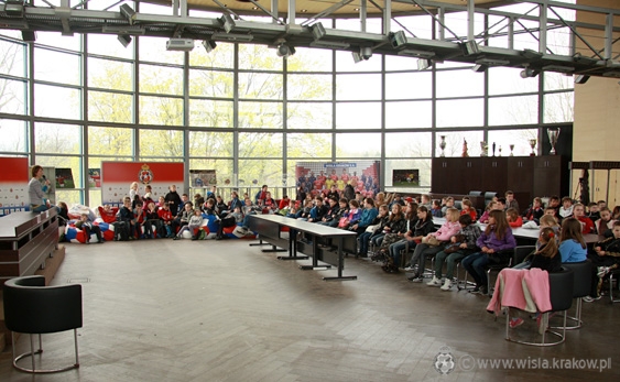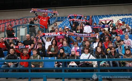 We wtorek na Reymonta 22 zawitali uczniowie ze szkoły podstawowej nr 52 w Krakowie oraz z Zespołu Szkół Gminnych w Siedlcu. Ponad stu osobowa grupa dzieci najpierw zwiedziła stadion, a potem obserwowała trening piłkarzy pierwszej drużyny, który odbył się na boisku głównym. Przy okazji mali fani głośno dopingowali Wiślaków, ćwiczących pod okiem trenera Roberta Maaskanta. „Patryk Małecki!” – rozlegało się na całym stadionie.