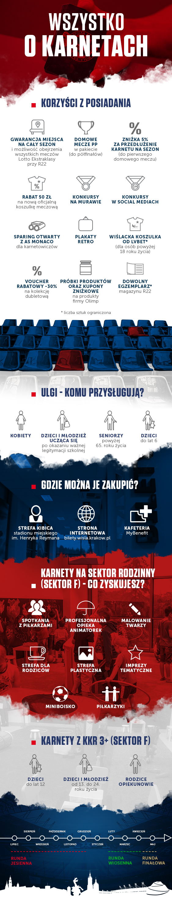 Karnet sezon 2018/2019 obejmuje nie tylko spotkania ligowe, ale także te rozgrywane w ramach Pucharu Polski. Kibice przedłużający karnety mogą przyglądać się na żywo poczynaniom Wisły w nadchodzących rozgrywkach już od 320 zł (normalny) oraz 205 zł (ulgowy). Oznacza to, że będą mogli nabyć abonamenty sezonowe z 35% zniżką.