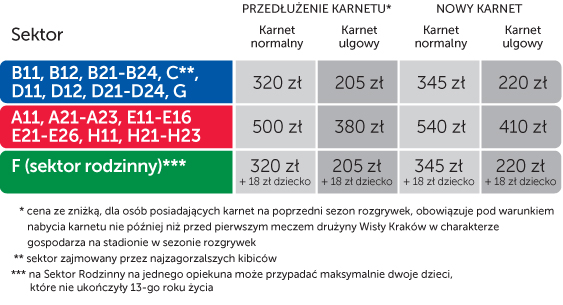 Sprzedaż karnetów sezon 2018/2019 rozpocznie się we wtorek 5 czerwca o godzinie 11.00 w Strefie Kibica, za pośrednictwem strony internetowej bilety.wisla.krakow.pl oraz w kafeterii MyBenefit. Niezmiennie karnety wraz ze zniżką wyłącznie w Strefie Kibica będą mogli nabywać posiadacze Krakowskiej Karty Rodzinnej 3+ (sektor F).