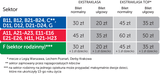 UWAGA! Bilet bez Karty Kibica będzie droższy o 5 zł od cen regularnych.