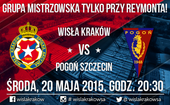 Data publikacji: 19-05-2015 14:58W najbliższą środę o godzinie 20.30 podopieczni trenera Kazimierza Moskala rozegrają przed własną publicznością mecz z Pogonią Szczecin w ramach rundy finałowej. Już teraz zachęcamy wszystkich sympatyków Białej Gwiazdy do nabywania wejściówek przez Internet. Przed nami bardzo ważny mecz, dla drużyny, Klubu, dla kibiców. Bądźcie z drużyną Wisły!