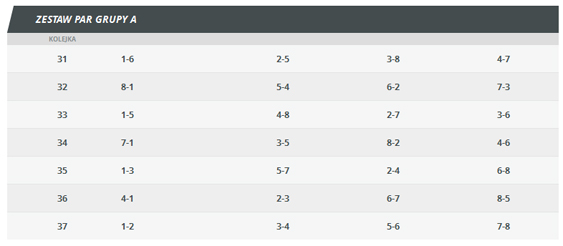 Pary w poszczególnych kolejkach zostaną ułożone na podstawie miejsc w tabeli zajmowanych po zakończeniu rundy zasadniczej.