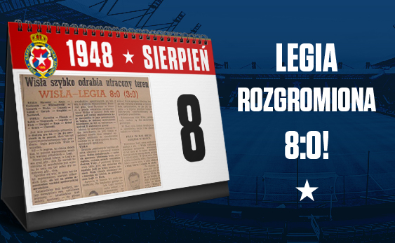 Data publikacji: 08-08-2017 10:12W Wiślackim kalendarzu pod datą „8 sierpnia” jedno wydarzenie szczególnie rzuca się w oczy. Tego dnia w 1948 roku Biała Gwiazda rozgromiła Legię Warszawa 8:0 i jest to najwyższe zwycięstwo krakowian nad Wojskowymi.