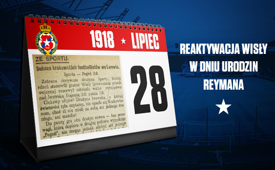 Data publikacji: 28-07-2018 15:37Dokładnie 100 lat temu Wisła Kraków została reaktywowana po 4 latach niebytu. Biała Gwiazda wznowiła działalność po I Wojnie Światowej dzięki inicjatywie oddanych piłkarzy, w tym gronie był Henryk Reyman i to w dniu jego urodzin - 28 lipca 1918 roku - rozegrano pierwszy mecz. Biała Gwiazda pokonała Pogoń Lwów 3:0.