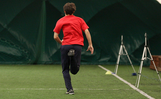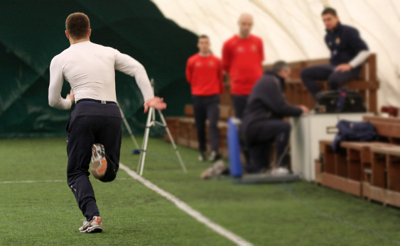 Pierwsza grupa tradycyjnie już pokonywała boisko podzielone na cztery odcinki w coraz krótszym czasie. Zaczynało się od 27 sekund przeznaczonych na jeden odcinek, a najlepsi kończyli na okrążeniu całego boiska poniżej minuty. Po przebiegnięciu trzech lub czterech okrążeń zawodnicy mieli chwilę przerwy, w trakcie której zapisywane było ich tętno i pobierana krew. "Co każdy odcinek pobiera się krew i sprawdza się poziom zakwaszenia, czyli poziom kwasu mlekowego. To jest bardzo obiektywny czynnik, który mówi o poziomie zmęczenia zawodnika. Na tej podstawie wyznacza się wartości progowe. Te wartości, które są wielokrotnie badane, można porównać. Wielokrotność tych badań daje nam możliwość obiektywnego ocenienia zawodników"-– tłumaczył trener Bahr.