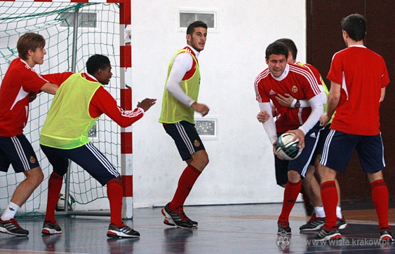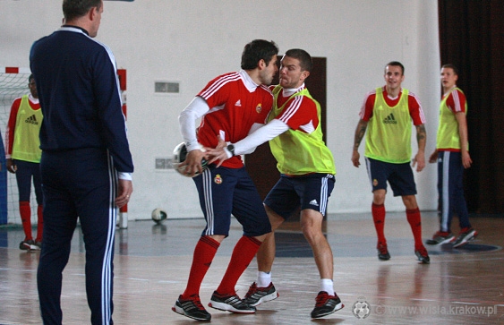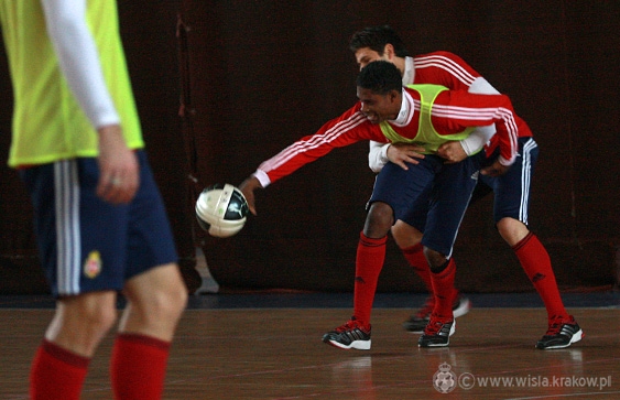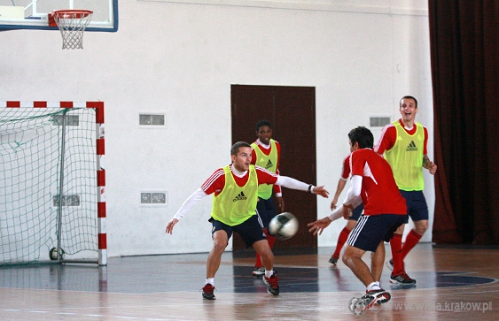 Zawodnicy najpierw mieli rozgrzewkę i ćwiczyli na siłowni, a potem przeszli do hali. Tam oprócz ćwiczeń piłkarskich rozegrali także mecz koszykówki. Piłkarze, którzy dwa razy sprawdzali swoje umiejętności w tej dyscyplinie w meczach z koszykarkami Białej Gwiazdy, tym razem grali między sobą Piłkarze zagrali dwa razy po pięć minut w sześcioosobowych zespołach.